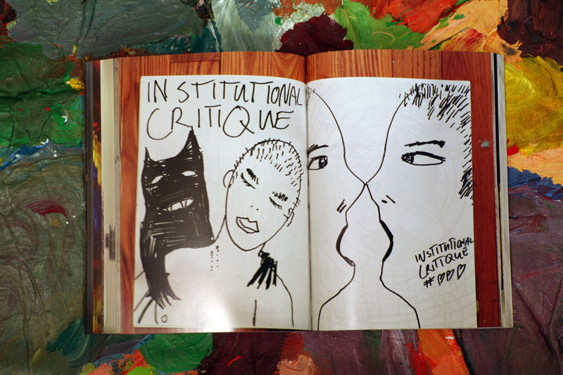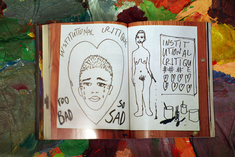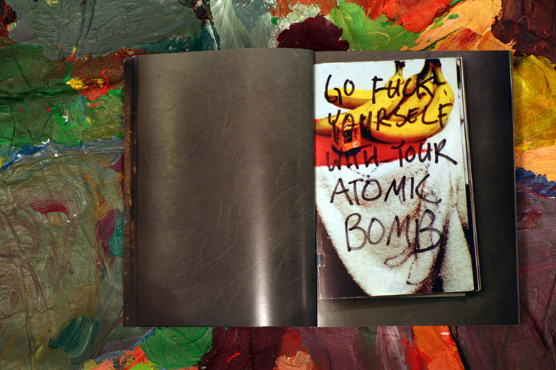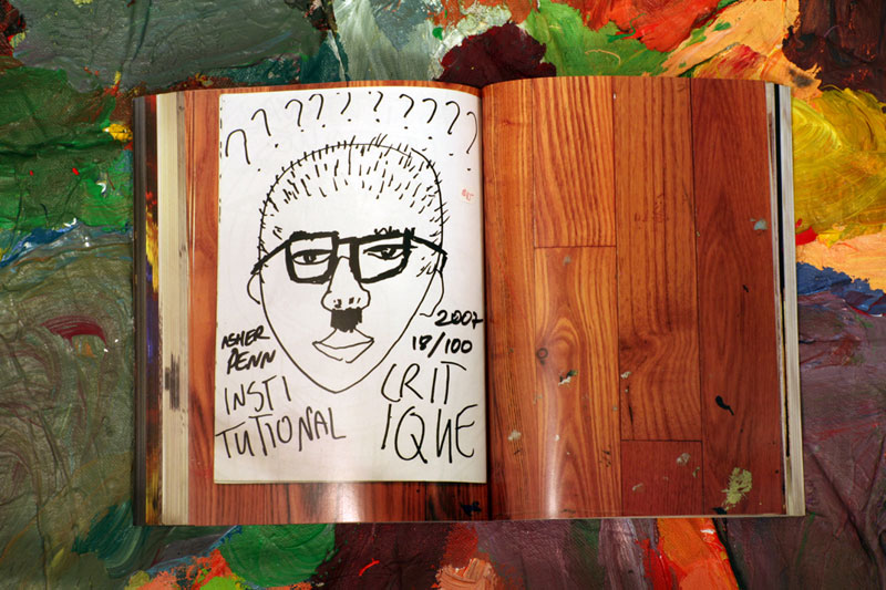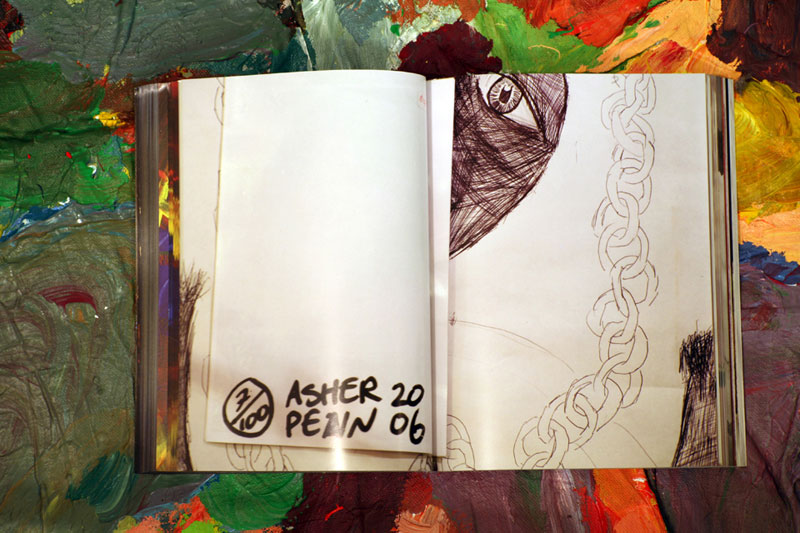 Anthology of artist books self-published by Asher Penn between 2004 and 2007-an anthology that is effectively an artist book itself. Made between Providence, New York, Philadelphia and Vancouver, these 'zine-like publications are rephotographed page by page on top of painted works that Penn was producing at the time of their re-publication. In rephotographing these original editions on the surface of recent work, Penn cleverly illustrates the creative vertigo capable of creeping up on artists while they look back at the artist that they have become. The artist books collected in this anthology include the following: Just Say Maybe; Go Fuck Yourself With Your Atomic Bomb; Bad Hound, Buddha; School; Asher Mixtape Hell; Elisa Penn Hero One; Institutional Critique; The Heart Wants What The Heart Wants; Before And After; and (Untitled).