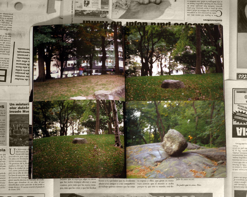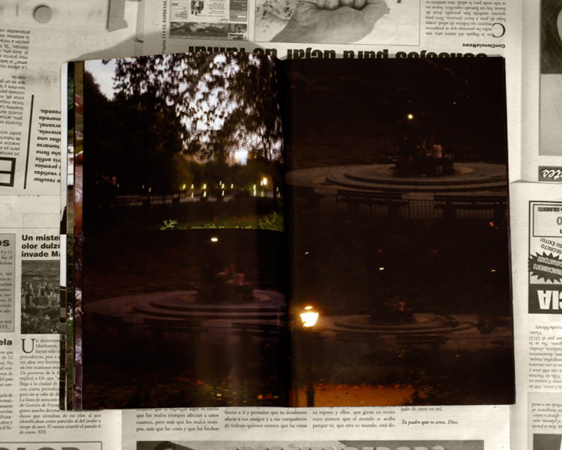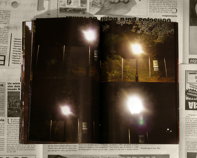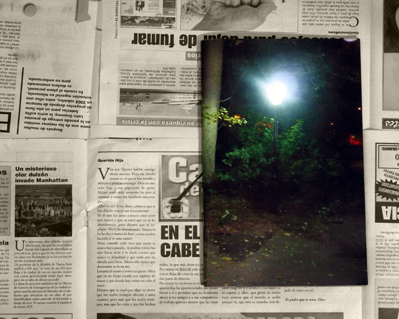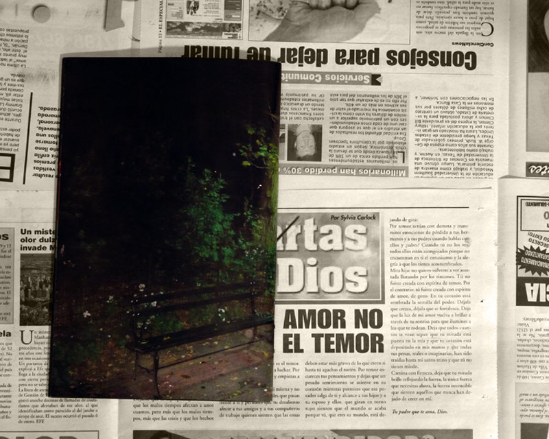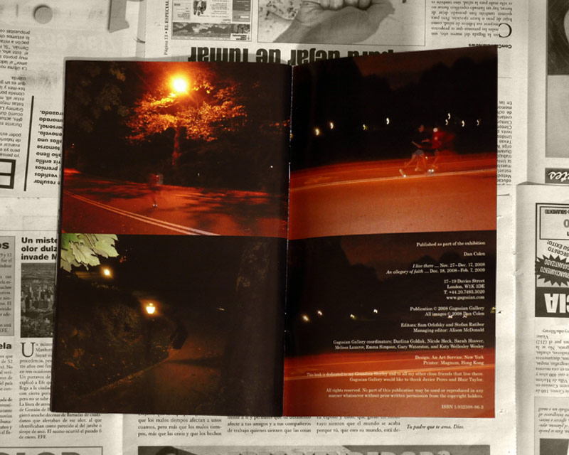 Artist book published in conjunction with "An Allegory of Faith...," held December 18, 2008 - February 7, 2009, Gagosian Gallery, London. A takeaway booklet available to gallery visitors, it compiles a series of snapshots taken by Colen of an evening spent wandering Central Park. Colen moves, mostly alone, from the entrance at Columbus Circle to the park's noted Alice in Wonderland sculpture and then into the park's secluded Ramble—a woodland respite whose knotty paths, dim lighting and thick forests make it prime site for both illicit nighttime activities and otherworldly musings. With these snapshots, Colen connects the eerily unpopulated Disney scenes of his paintings to the highly mythologized park central to Colen's hometown.